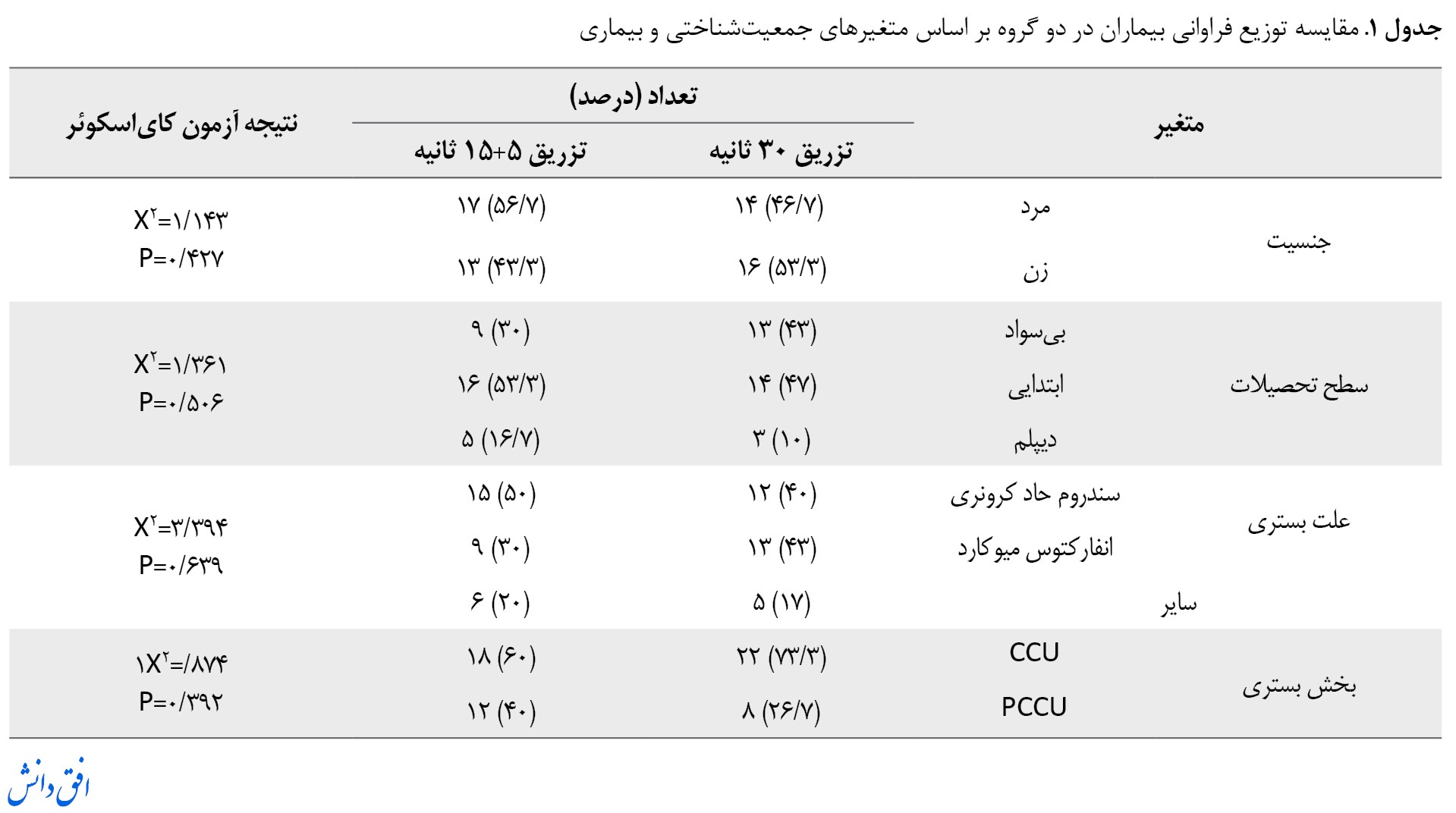 جدول شماره 1).