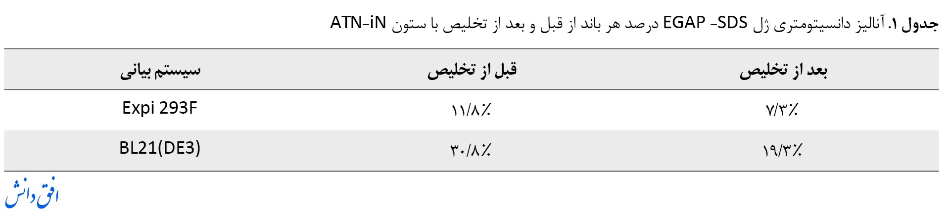 میزان بیان در هر دو سیستم بیانی متعاقب انجام تخلیص پروتئین با ستون نیکل صورت گرفت (